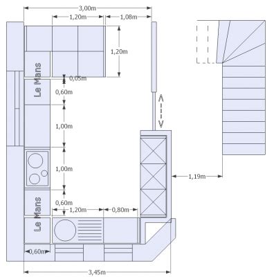 Die gängigen arbeitsplatten sind in der regel 60 cm tief und passen somit optimal zu den standardmaßen von küchenmöbeln. Die >120 brauchen wir nur unbedingt, wo die beiden 60er aneinanderstoßen (13+17). Der empfohlene abstand zwischen arbeitsfläche und oberschrank beträgt 48cm.
